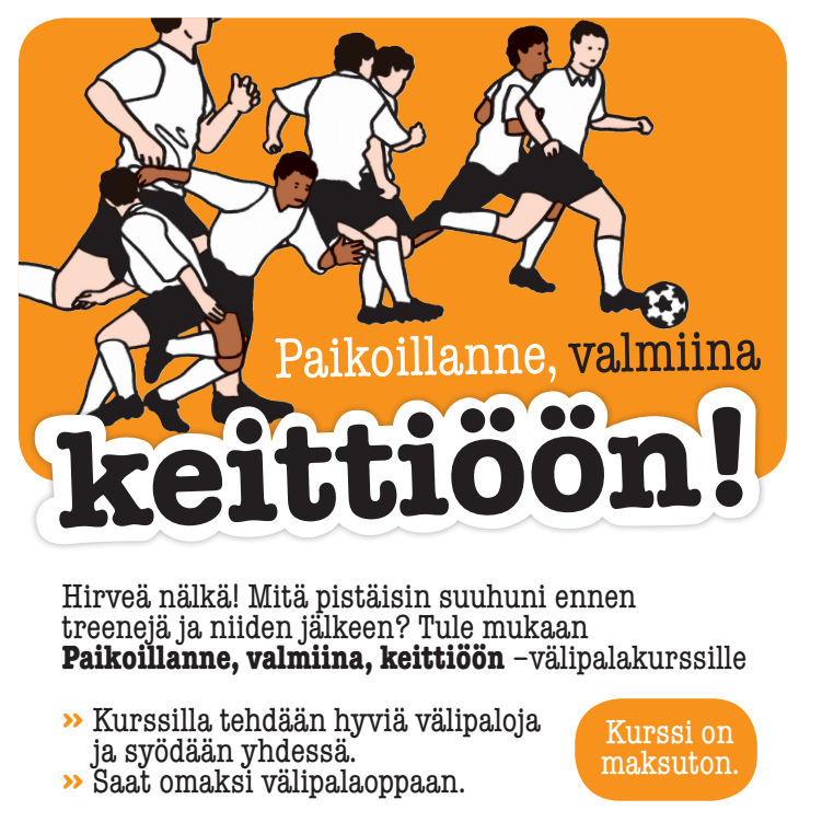Välipalakurssi 17.9. klo 17.30-20 (noin) koulukeskuksen opetuskeittiössä